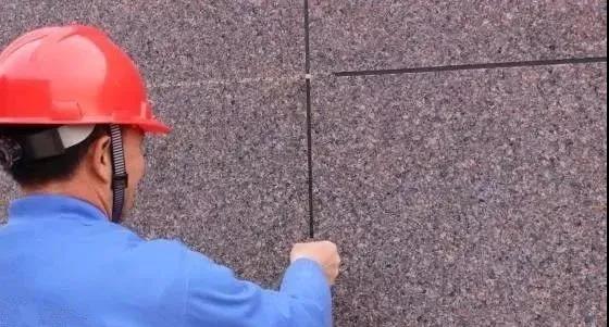 膩子施工完,涂刷抗堿封閉底漆后,可進行分格縫工序。根據設計的分格大小,用彈線的方式在墻面上畫分格。