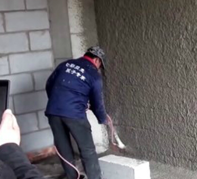 七彩貝殼SG3000A型砂漿噴涂機(jī)安徽阜陽(yáng)工地噴涂現(xiàn)場(chǎng)