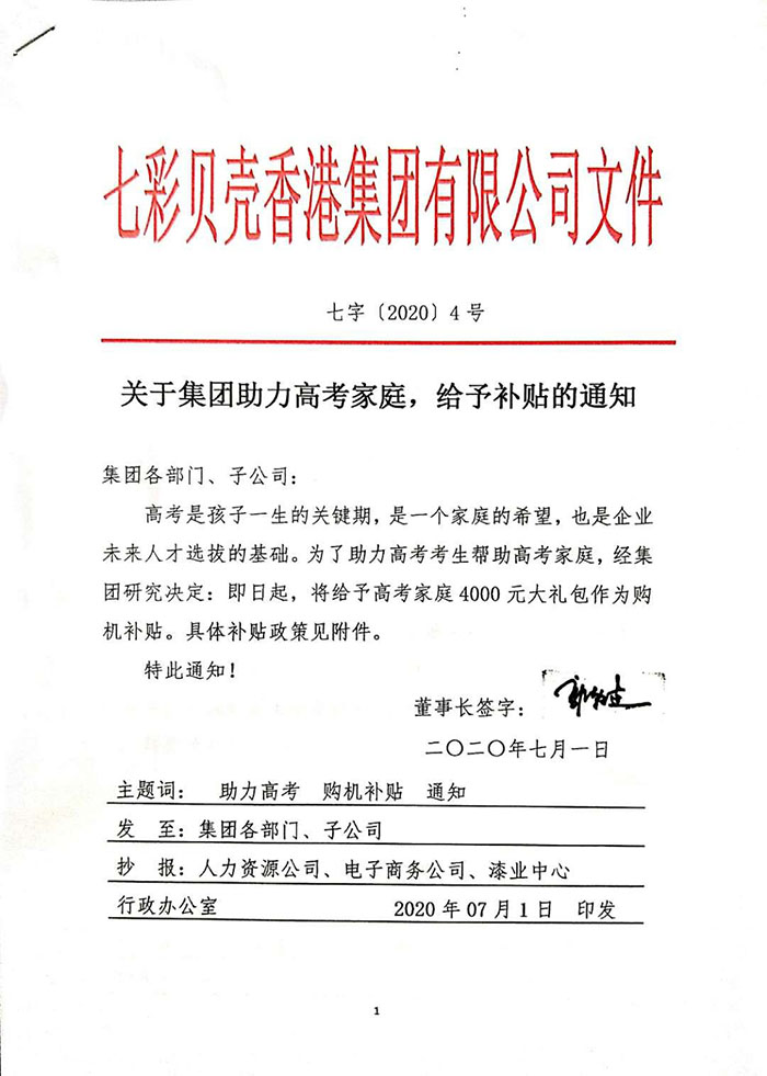 關于集團助力高考家庭,給予補貼的通知(圖文)